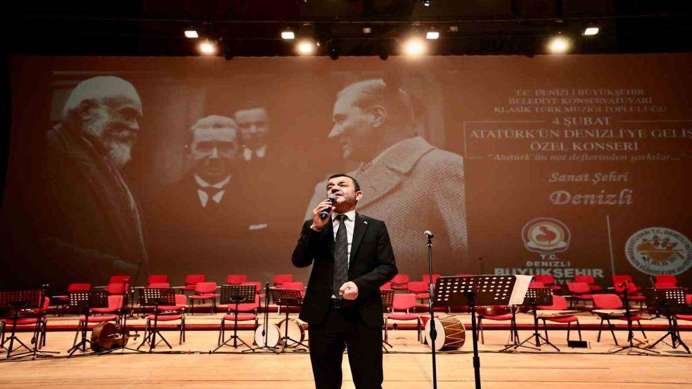 Denizli Büyükşehir Belediyesi Konservatuvarı Türk Müziği Topluluğu tarafından seslendirilen ve Atatürk’ün Denizli’ye gelişinin anısına düzenlenen "Atatürk’ün Sevdiği Şarkılar Konseri", Nihat Zeybekci Kongre ve Kültür Merkezi’nde gerçekleştirildi. Programa Denizli Valisi Ömer Faruk Coşkun, Milletvekili Şeref Arpacı, Denizli Büyükşehir Belediye Başkanı Bülent Nuri Çavuşoğlu, Başkanvekili Ali Marım, CHP İl Başkanı Ali Osman Horzum çok sayıda davetli ve vatandaşlar katıldı. Şef Ahmet Nuri Çağdaş yönetimindeki konserde, Ulu Önder Mustafa Kemal Atatürk’ün en sevdiği şarkılar seslendirildi. Denizlililerin yoğun ilgi gösterdiği gecede duygusal anlar yaşanırken Vali Coşkun ve Başkan Çavuşoğlu programın sonunda Şef Ahmet Nuri Çağdaş’a plaketini takdim etti.
