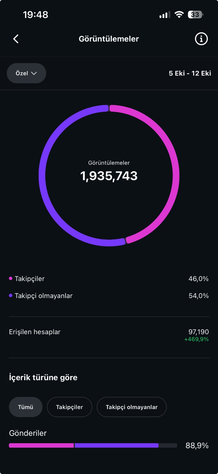 Sadece bir haftalık süreçte Aydınspor’un Instagram hesabı 1.935.743 görüntülenme elde etti. Bu etkileşimin %54’ü, kulübün takipçisi olmayan hesaplardan geldi ve Aydınspor markasının şehir sınırlarını aşarak çok daha geniş bir kitleye ulaştığını ortaya koydu.