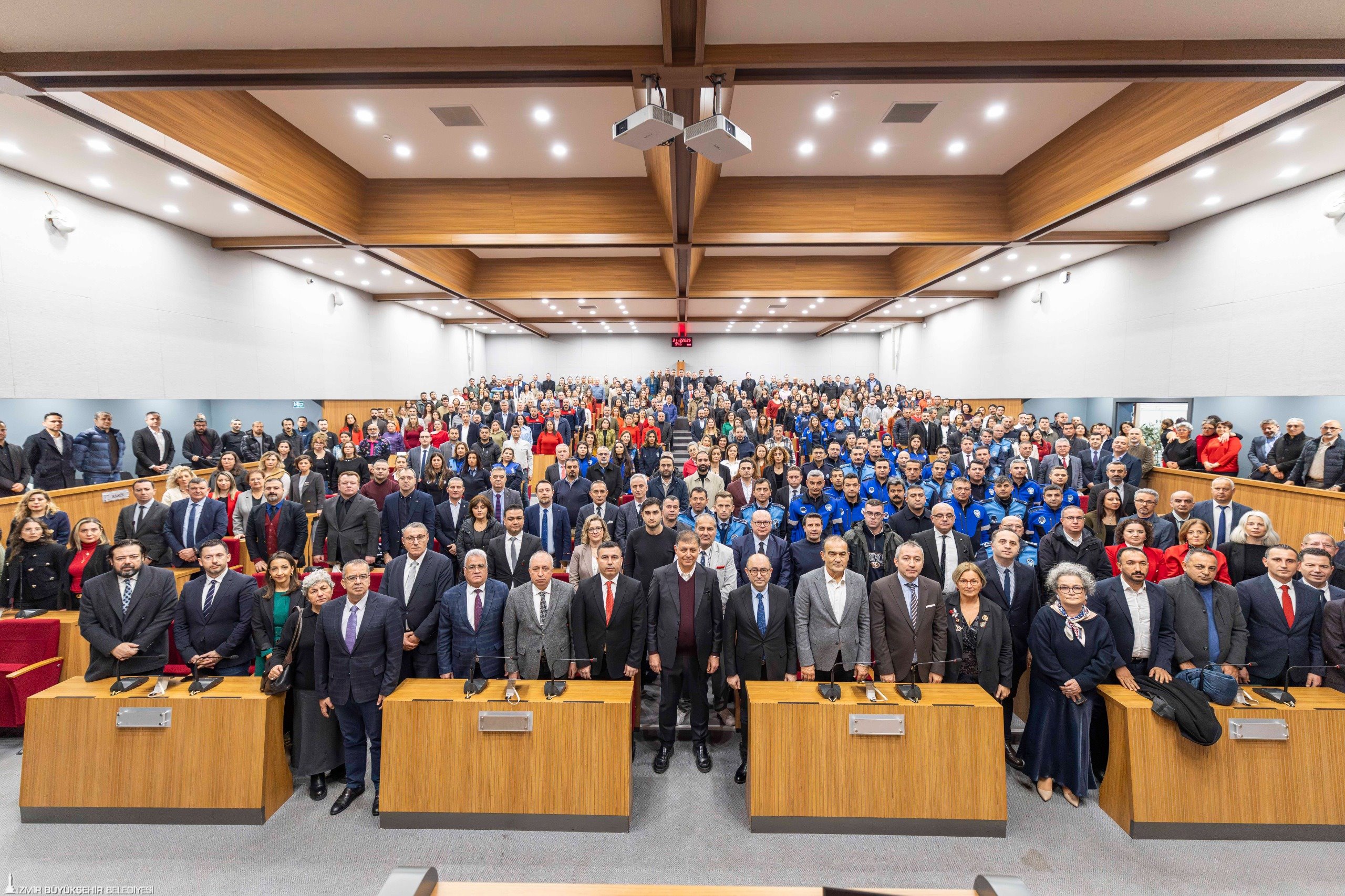 İzmir Büyükşehir Belediye Başkanı Dr. Cemil Tugay, yılın son iş gününde belediye personeliyle bir araya geldi. Kültürpark’taki Meclis Toplantı Salonu’nda gerçekleşen etkinlikte Tugay, kentteki tüm yurttaşlara ayrım gözetmeksizin sunulan hizmetler için çalışma arkadaşlarına teşekkür etti.