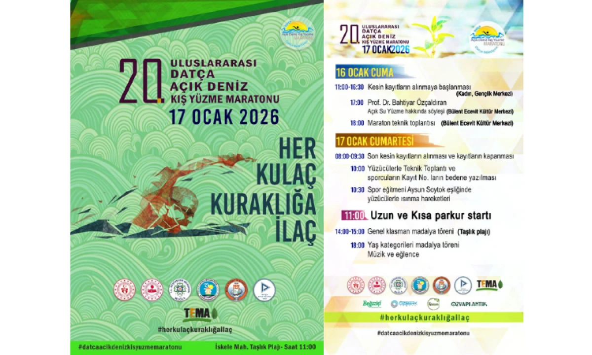 Türkiye’de kış aylarında düzenli olarak yapılan; TEMA Vakfının da destekçisi olduğu ilk açık deniz kış yüzme maratonu olan Uluslararası 20. Datça Açık Deniz Kış Yüzme Maratonu’nun bu yılki sloganı, “Her Kulaç Kuraklığa İlaç.”