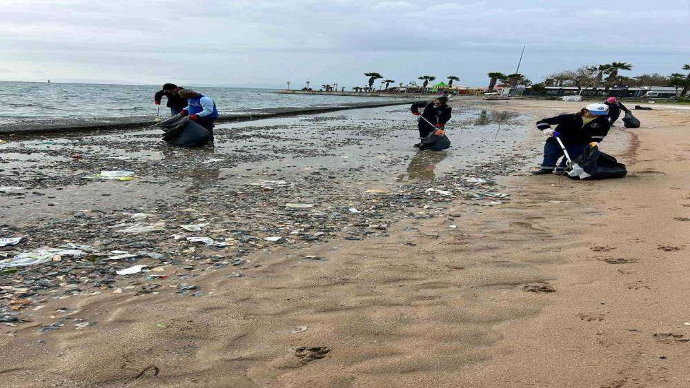 Aydın’ın Didim ilçesinde belediye ekipleri sahillerde temizlik çalışması gerçekleştirdi.