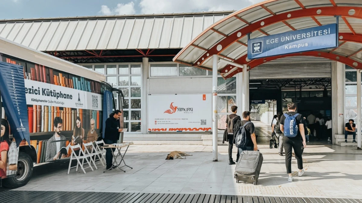 2025-2026 akademik yılıyla birlikte Gezici Kütüphane, her cuma Ege Üniversitesi Metro durağında öğrencilerin hizmetine sunuluyor. Öğrenciler, kütüphane üyeliği oluşturup iki kitabı 21 gün süreyle ödünç alabiliyor.