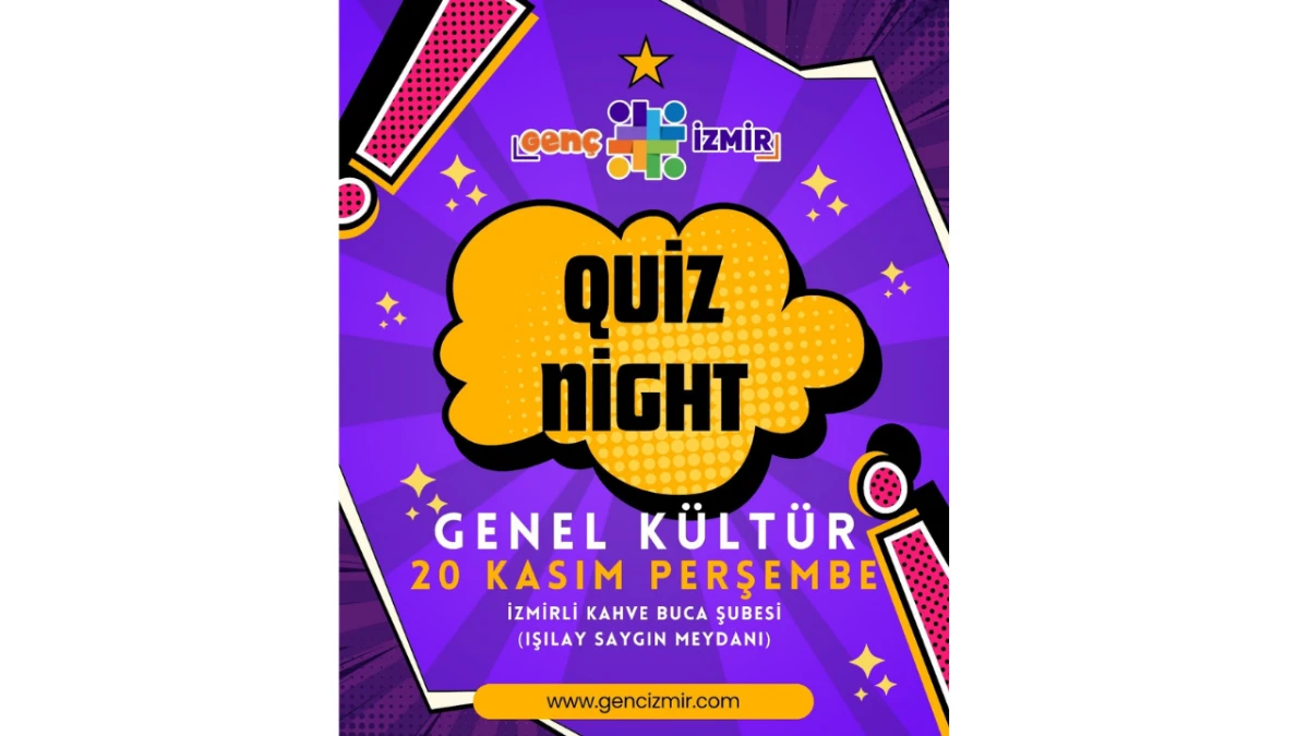 Genç İzmir’in yeni etkinliği, 20 Kasım Perşembe günü Buca Işılay Saygın Meydanı’ndaki İzmirli Kahve şubesinde düzenlenecek. Katılımcılar, soru-cevap formatında ilerleyecek yarışmada farklı kategorilerde genel kültür sorularını yanıtlayacak.