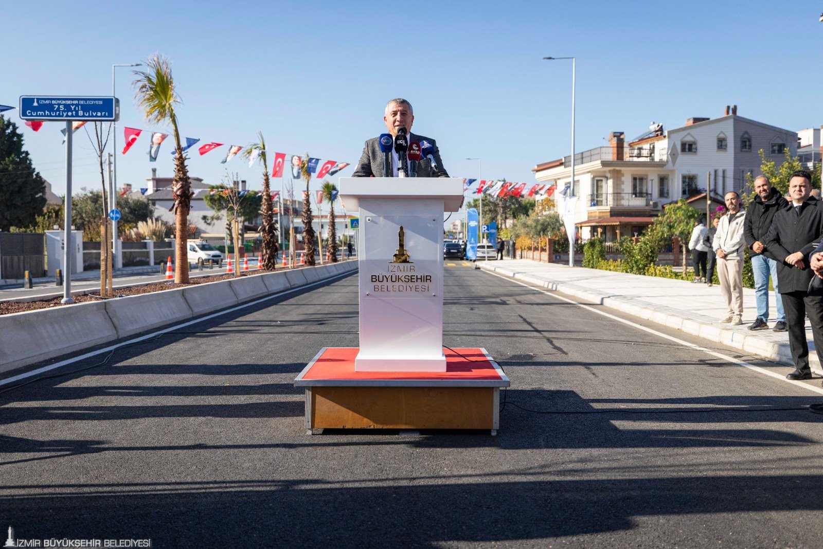 İzmir Büyükşehir Belediyesi tarafından Güzelbahçe’nin ulaşım ve altyapı sorunlarını çözmek amacıyla yapımı sürdürülen 75. Yıl Cumhuriyet Bulvarı’nın ilk etabı tamamlandı. 87 milyon 350 bin liralık yatırımla hayata geçirilen proje, düzenlenen törenle İzmirlilerin kullanımına açıldı.