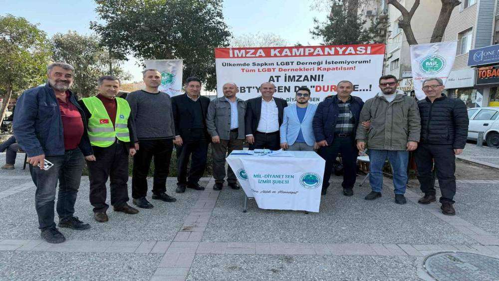 İzmir’de toplanan Manevi İlkeli Liyakatli Diyanet ve Vakıf Çalışmaları Sendikası (Mil-Diyanet Sen) üyeleri, LGBT derneklerinin kapatılması için imza kampanyası başlattı.
