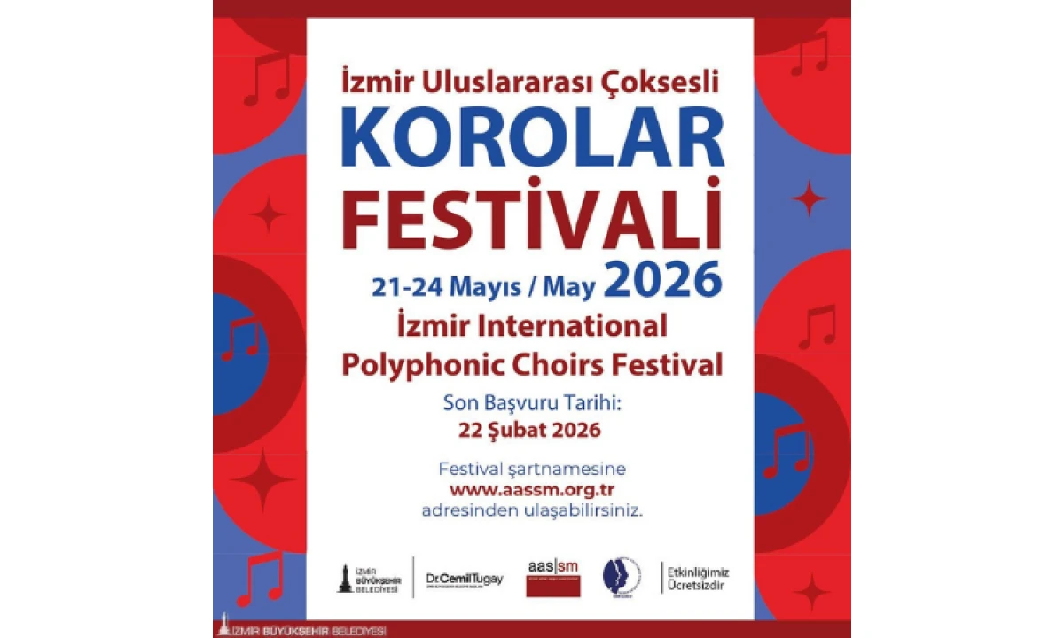 İzmir Büyükşehir Belediyesi ile Türkiye Polifonik Korolar Derneği İzmir Şubesi iş birliğinde düzenlenen İzmir Uluslararası Çoksesli Korolar Festivali için başvurular başladı. Festival 21–24 Mayıs tarihleri arasında Ahmed Adnan Saygun Sanat Merkezi’nde gerçekleşecek ve katılım için son tarih 22 Şubat olarak belirlendi.
