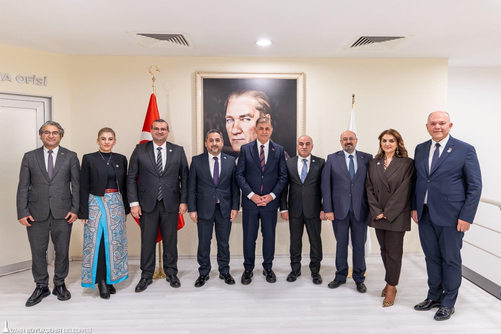 İzmir ile Bakü arasındaki kardeş şehir ilişkilerinin 40’ıncı yılı dolayısıyla İzmir Azerbaycan Derneği yöneticileri Başkan Cemil Tugay’ı ziyaret etti
