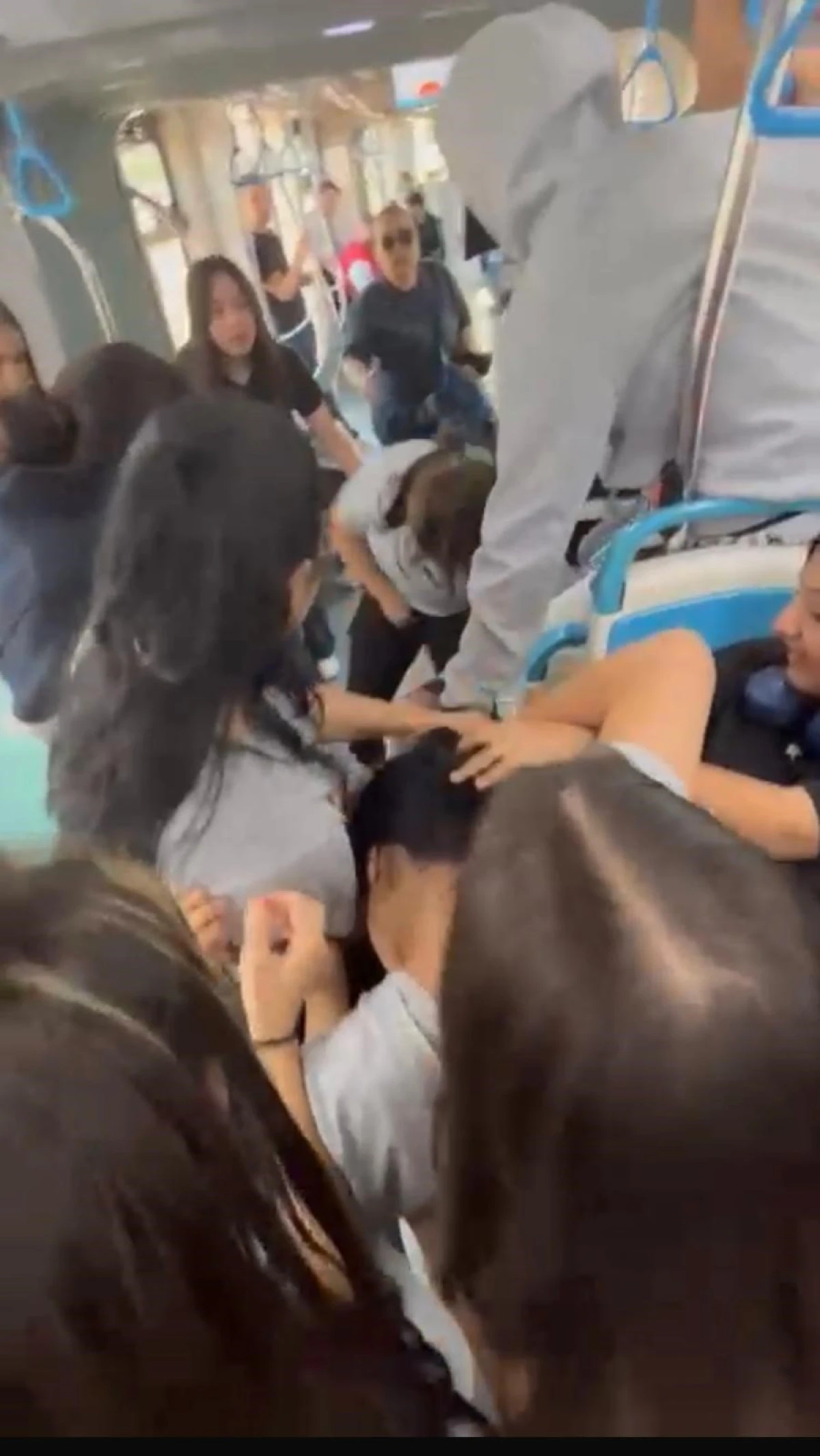 İzmir’de tramvayda bir grup kız öğrenci arasında çıkan kavga, cep telefonu kameralarına yansıdı. Tartışma kısa sürede saç saça ve yumruklu kavgaya dönüştü.