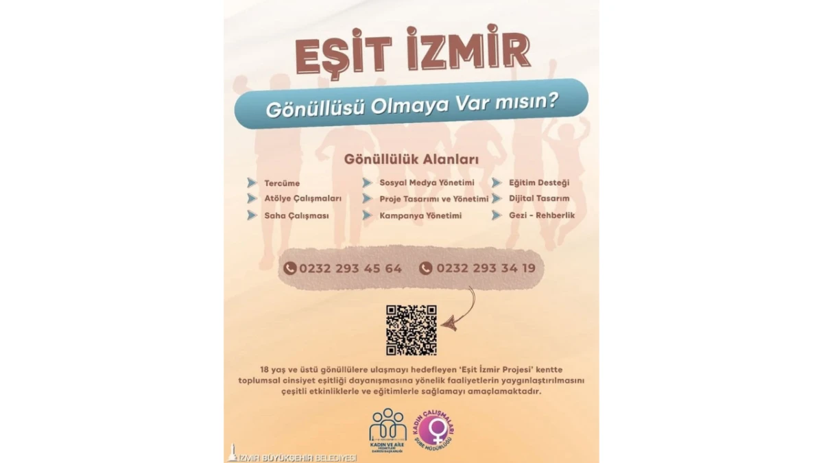 İzmir Büyükşehir Belediyesi, kadınların ve kız çocuklarının güçlenmesini hedefleyen Eşit İzmir projesini başlattı. Proje kapsamında farklı alanlarda gönüllü olarak katkı sağlamak isteyenler başvurularını yapabiliyor.