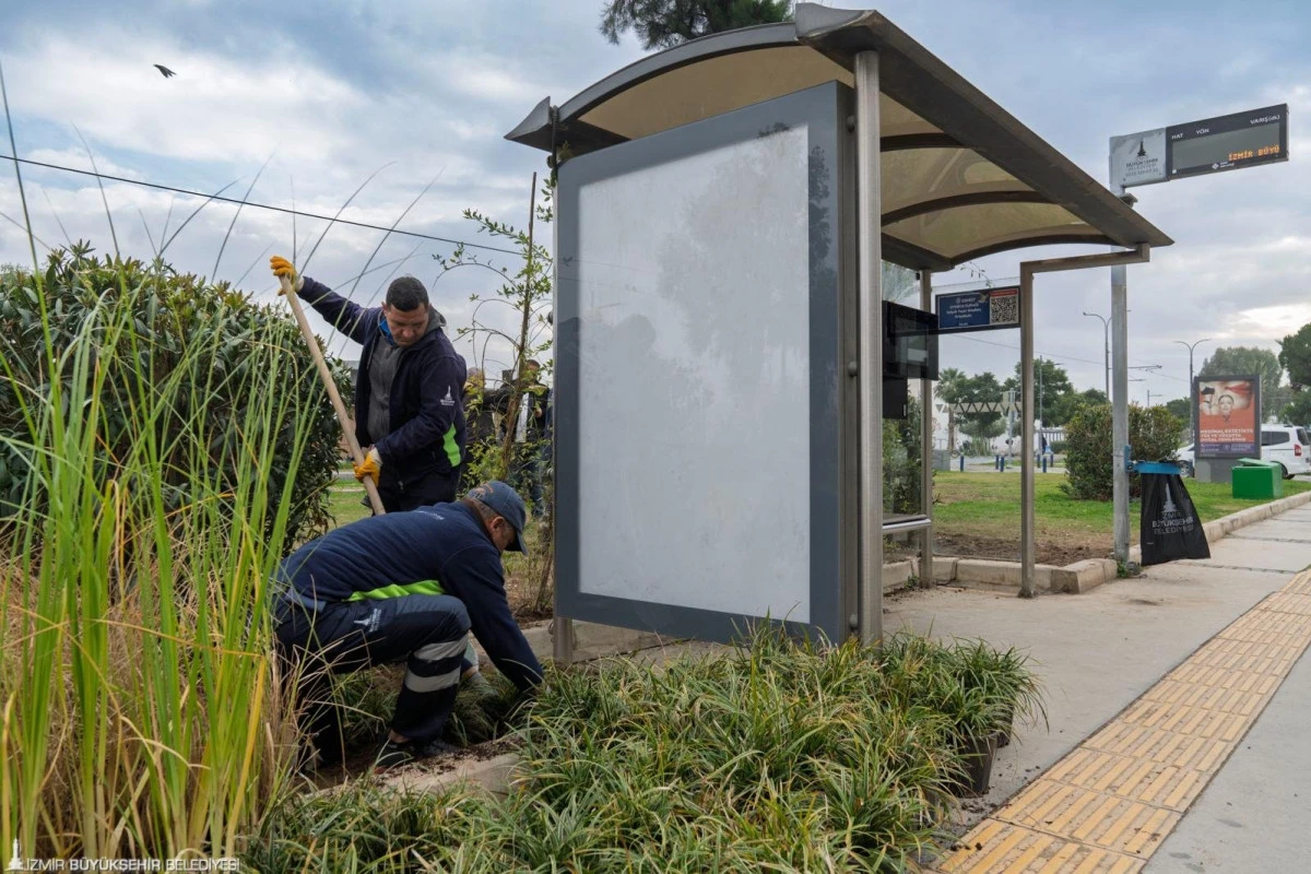İzmir Büyükşehir Belediyesi, otobüs duraklarını sarmaşık ve kurakçıl bitkilerle donatarak şehir estetiğini güçlendiriyor