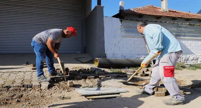 Menderes Belediyesi, Karakuyu Mahallesi’nde yağmur suyu kanalları döşeme çalışması gerçekleştirdi.
