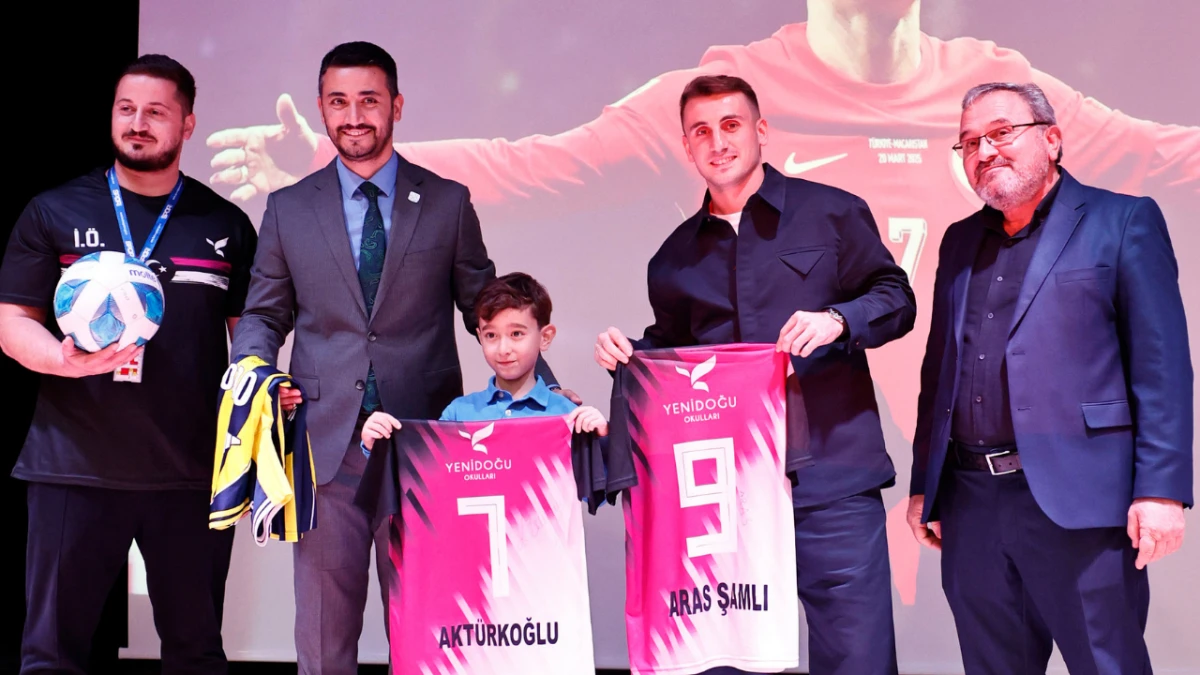 Millî futbolcumuz Kerem Aktürkoğlu, Yenidoğu Okulları’nda okul başkanlığına seçilen 3. sınıf öğrencisi Aras Şamlı’nın hayalini gerçekleştirdi. Ziyaret sırasında Aras ve arkadaşlarıyla buluşan Kerem, öğrencilerin sorularını yanıtladı ve hatıra fotoğrafı çektirdi.