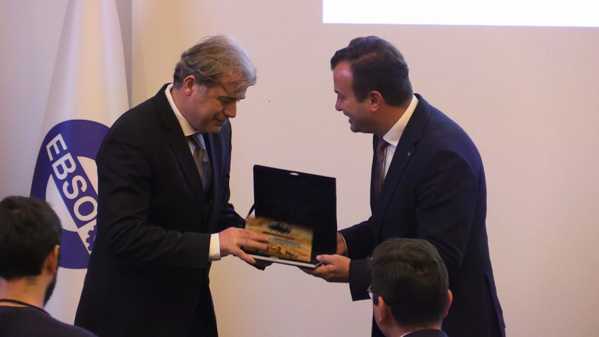 Konuşmaların ardından plaket takdim edildi.