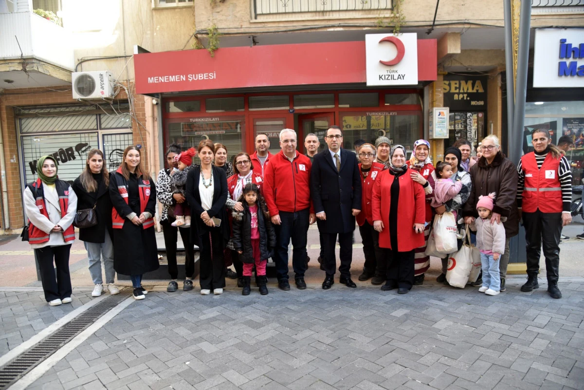 Kızılay Menemen Şubesi, gönüllülerle hazırladığı atkı, bere ve pijama paketlerini çocuklara ulaştırdı