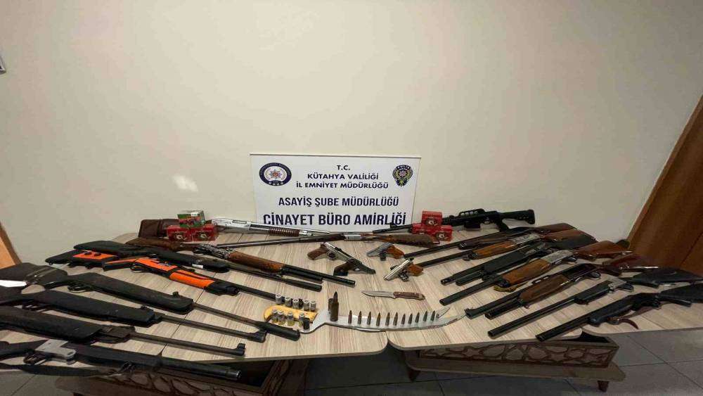 Kütahya İl Emniyet Müdürlüğü Asayiş Şube Müdürlüğü Cinayet-Gasp Büro Amirliği tarafından il genelinde meydana gelebilecek olayların önlenmesi, suç aletlerinin ele geçirilebilmesi ve suçluların yakalanabilmesi amacıyla sosyal medya üzerinden tabanca, tüfek ve mühimmat paylaşımında bulunan şahıslara yönelik yapılan araştırmalar çerçevesinde şüphelilerin 13 sosyal medya hesabından paylaşım yaptığı tespit edildi. Siber Suçlar Şube Müdürlüğü tarafından 13 kullanıcının sosyal medya hesapları ile ilgili yapılan araştırmalar sonucunda şahısların il merkezinde bulunan toplam 21 adresinde eş zamanlı operasyon düzenlendi. Adreslerde, toplam, 10 adet ruhsatsız av tüfeği, 3 adet ruhsatlı av tüfeği, 2 adet ruhsatsız tabanca, 2 adet kurusıkı tabanca, 4 adet havalı tüfek, 263 adet av tüfeği kartuşu, 13 adet çeşitli çaplarda tabanca fişeği, 6 adet G-3 fişeği, 5 adet kaleş fişeği, 1 adet uçak savar fişeği, 11 adet ses fişeği, 3 adet bıçak, 1 adet muşta, 1 adet seyyar dipçik ve 1 adet seyyar gez ele geçirildi.