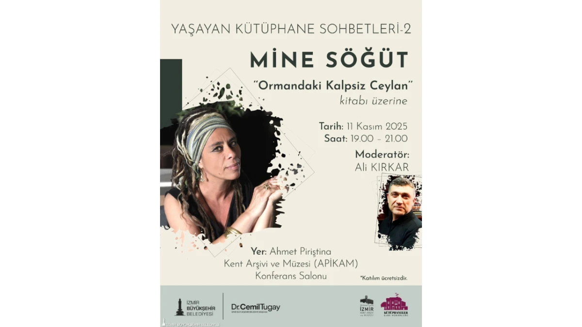 Çağdaş edebiyatın özgün sesi Mine Söğüt, 11 Kasım Salı günü Ahmet Piriştina Kent Arşivi ve Müzesi’nde düzenlenecek Yaşayan Kütüphane Sohbetleri’nde okurlarla bir araya gelecek. Söyleşi, “Ormandaki Kalpsiz Ceylan” kitabı üzerine gerçekleşecek ve Ali Kırkar moderatörlüğünde yürütülecek.