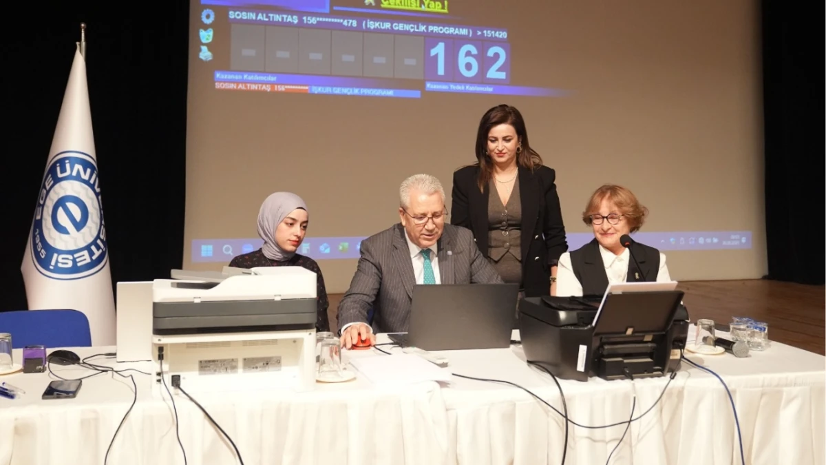 Ege Üniversitesi’nde İŞKUR Gençlik Programı kapsamında 4 bin öğrenci, noter huzurunda gerçekleştirilen kura ile belirlendi. Program öğrencilerin iş deneyimi kazanmasını amaçlıyor.
