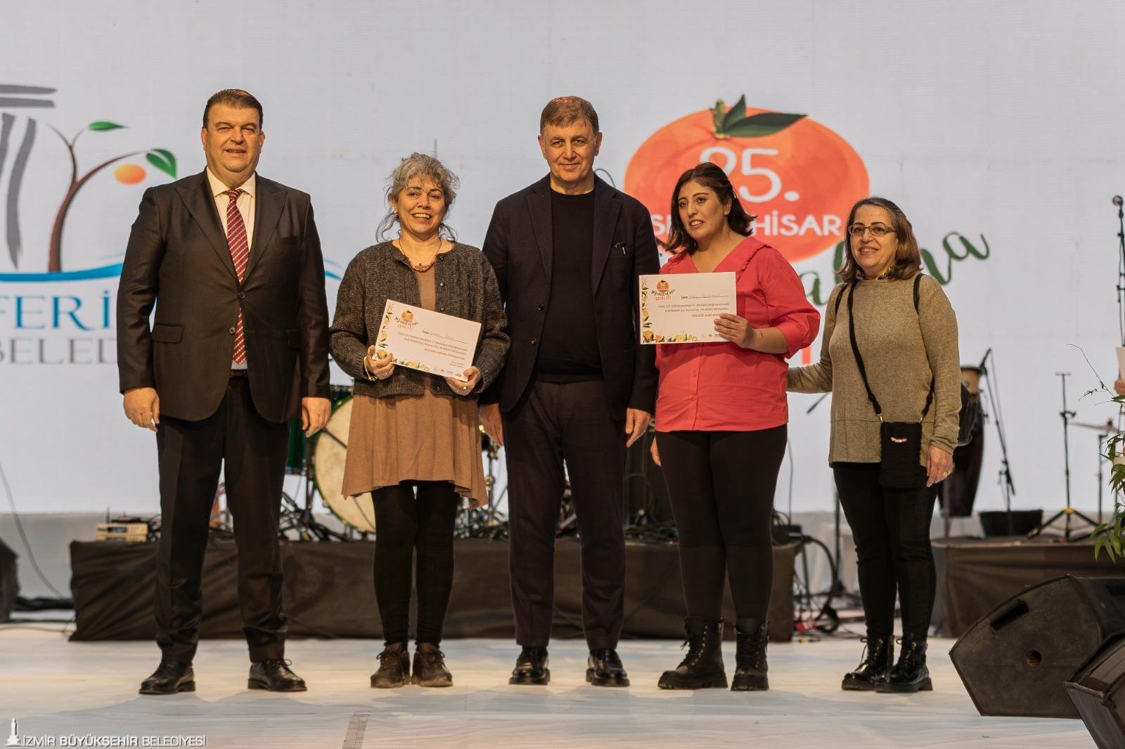 Şenlik kapsamında düzenlenen Hediyelik Eşya Yarışması’nda dereceye giren tasarımlar ödüllendirildi. Başkan Tugay ve Başkan Yetişkin, birinci Zeynep Şumnulu, ikinci Bahar Özcan ve üçüncü Kübra Selüktekin’e ödüllerini verdi.