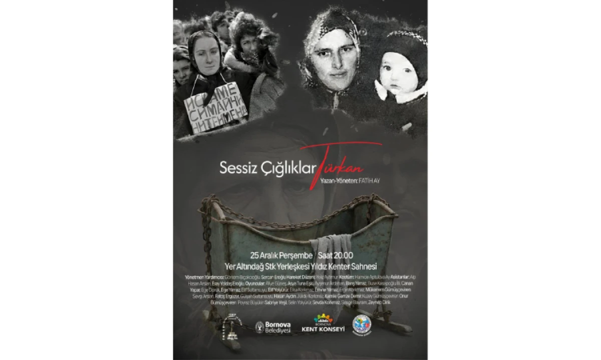 “Sessiz Çığlıklar Türkan” tiyatro oyunu, 25 Aralık’ta Bornova Altındağ Kültür Merkezi’nde sahnelenecek. Oyun, Türkan Bebek’i konu alan Türkiye’deki ilk tiyatro eseri olma özelliğini taşıyor