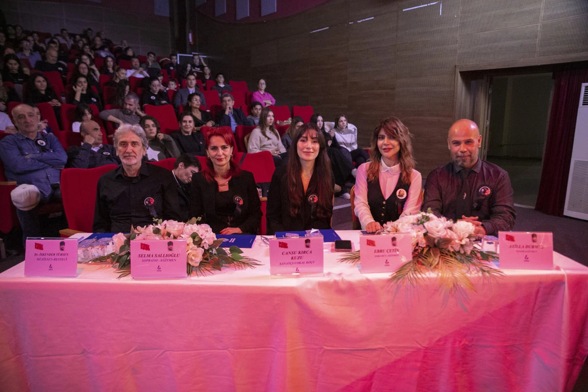 Gençlerin seslendirdiği Atatürk’ün sevdiği şarkı ve türküler, salondaki izleyicilerden uzun süre alkış aldı.