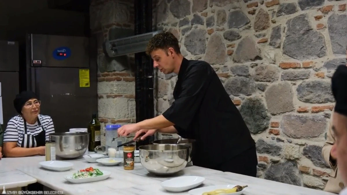 Şef Rıfat Yurttaş, İzmir Büyükşehir Belediyesi’nin pastacı çıraklığı kursundan mezun olan işitme engelli kursiyerlerle bir araya gelerek Ege mutfağına özgü meze ve zeytinyağlı yemekler yaptı. İşaret dili çevirmenleri aracılığıyla mezun kursiyerlerle iletişim kuran Yurttaş, yemek yapmanın inceliklerini aktardı